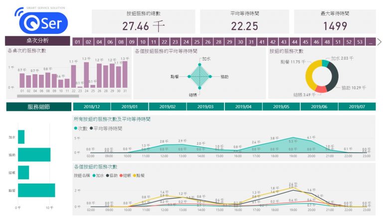 後台管理系統,讓老闆們在外也可以即時掌握服務情報。萬一店員疏忽,未完成服務,手機上打開Dash Board就可以即時知道當時的狀態,按下手機螢幕就可以直接控制,超方便。